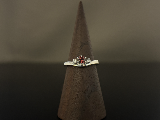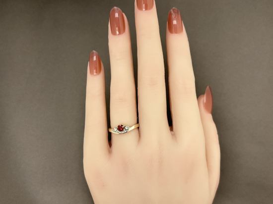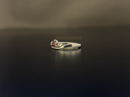 ・宝石:両脇2mm(ホワイトトパーズ), 中央4mm(ガーネット)←1月誕生石!